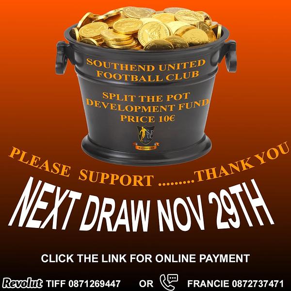 Last split the pot draw will take place on Saturday 29th in clubhouse at 12am you can purchase tickets on link below: